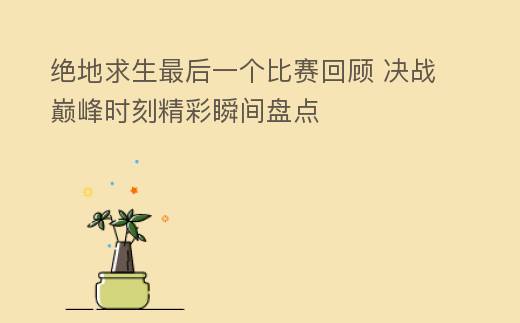 绝地求生最后一个比赛是一场充满挑战的巅峰对决。要想在这场比赛中脱颖而出,玩家需要充分了解比赛规则,掌握战术策略,培养良好的心理素质,并不断提升实战技巧。通过不断努力和训练,相信每位玩家都能在这场决战中取得优异的成绩。