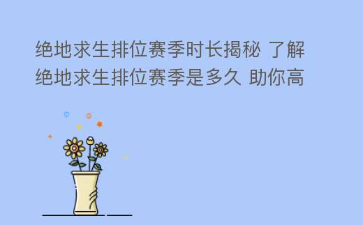 前言:在《绝地求生》这款全球知名的竞技游戏中,排位赛季是许多玩家追求高段位、证明自己实力的关键阶段。那么,绝地求生排位赛季究竟是多长时间呢?本文将为您详细解析。