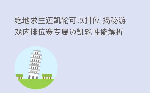 相关搜索词:绝地求生迈凯轮排位技巧、迈凯轮在绝地求生中的优势、如何提高迈凯轮排位赛成绩、绝地求生迈凯轮使用攻略、迈凯轮在绝地求生中的性能解析