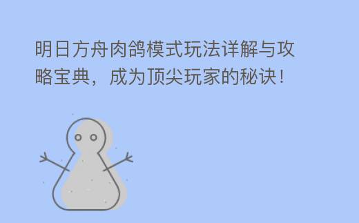 明日方舟的肉鸽模式是一种非常有趣和挑战性的游戏模式,通过掌握游戏规则、角色选择、技能搭配、攻略和实用技巧,玩家可以在这个模式中取得更好的成绩,希望本文的攻略和实用技巧能帮助你成为顶尖玩家!