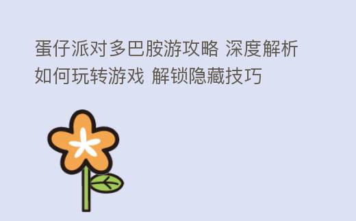 在《蛋仔派对》这款充满欢乐的多人在线游戏中,玩家们可以体验到无尽的乐趣和挑战。这款游戏以其独特的玩法和丰富的关卡设计,吸引了大量玩家。而“多巴胺游攻略”则是指那些能够帮助玩家在游戏中获得更多快乐和成就的策略。以下是详细的攻略,助你解锁快乐之旅。