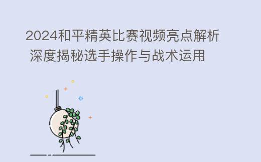 2024和平精英比赛视频亮点解析 深度揭秘选手操作与战术运用