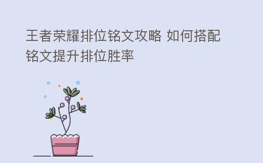 王者荣耀排位铭文攻略 如何搭配铭文提升排位胜率