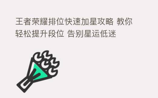 通过以上五个方面的努力,相信你在王者荣耀排位赛中能够快速加星,提升段位。祝你在游戏中取得优异成绩,畅享竞技乐趣!