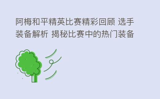摘要:前言:随着电子竞技的蓬勃发展,越来越多的手机游戏成为了竞技舞台上的焦点。在众多竞技游戏中,阿梅和平精英以其独特的玩法和激烈的竞技氛围,吸引了无数玩家的关注。本文将深入解析阿梅和平精英比赛,带你领略这款游戏的魅力,阿梅和平精英比赛精彩回顾 选手装备解析 揭秘比赛中的热门装备