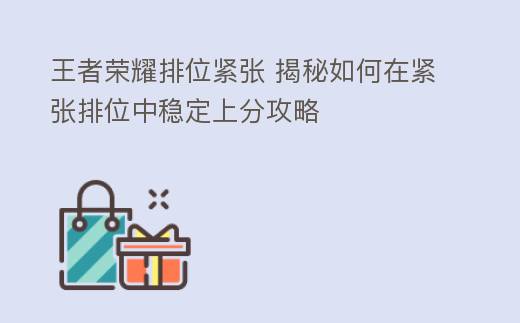王者荣耀排位紧张是许多玩家都会遇到的问题,但通过调整心态、加强沟通、提高自身实力和心理调适等方法,可以有效缓解排位压力,享受游戏乐趣。