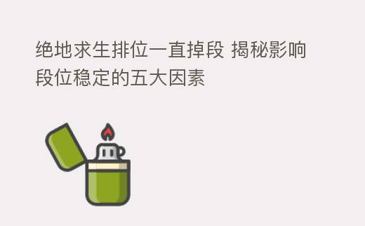 在《绝地求生》这款全球范围内备受欢迎的竞技游戏中,排位赛无疑是最具挑战性的模式之一。许多玩家在排位赛中都遇到了一个令人头疼的问题——排位一直掉段。这种现象不仅影响了玩家的游戏体验,还可能对玩家的心态造成负面影响。本文将深入分析绝地求生排位一直掉段的原因,并提供相应的解决办法,帮助玩家走出困境。