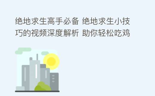 摘要:《绝地求生小技巧视频:助你成为战场高手》在《绝地求生》这款全球范围内备受欢迎的射击游戏中,掌握一些实用的技巧对于提高生存率至关重要。随着越来越多的玩家加入这场生死较量,如何从众多竞争者中脱颖而出,成为了许多玩家关注的焦点。今天,,绝地求生高手必备 绝地求生小技巧的视频深度解析 助你轻松吃鸡