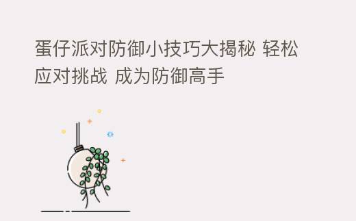 在《蛋仔派对》这款充满欢乐与挑战的休闲竞技游戏中,防御技巧是每位玩家都必须掌握的核心技能。一个出色的防御策略不仅能有效保护自己的基地,还能在对抗中占据优势。本文将为你揭秘一系列实用的防御小技巧,助你在游戏中打造坚不可摧的防线。