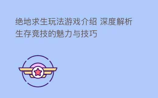 绝地求生玩法游戏介绍 深度解析生存竞技的魅力与技巧