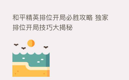 和平精英排位开局必胜攻略 独家排位开局技巧大揭秘