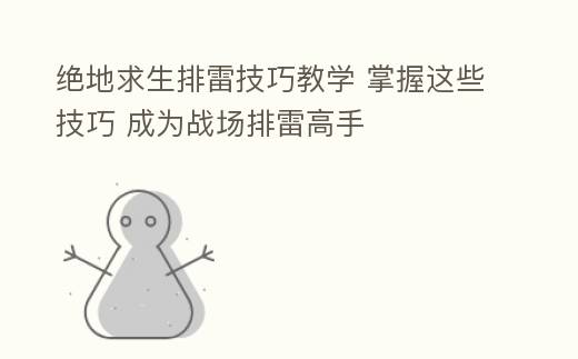 摘要:绝地求生排雷技巧教学:安全通行指南在《绝地求生》这款充满挑战的生存游戏中,排雷技巧是玩家们必须掌握的重要技能之一。排雷不仅关系到个人的生存,还可能影响到团队的整体战略。本文将为你详细解析排雷技巧,助你在游戏中安全通行,顺利吃鸡。一、了解雷区分布在游戏中,雷区通常分布在以下几种地方:道路、建筑物周围、桥梁下方、废弃车辆附近等。了解这些常见雷区分布,有助于玩家在游戏中,绝地求生排雷技巧教学 掌握这些技巧 成为战场排雷高手