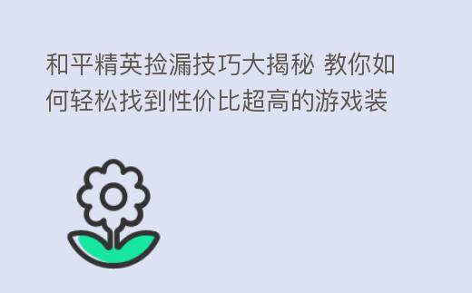 和平精英捡漏技巧大揭秘 教你如何轻松找到性价比超高的游戏装备