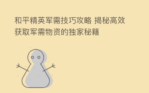 摘要:和平精英军需技巧攻略:打造最强生存者在《和平精英》这款热门的生存竞技游戏中,军需系统是玩家提升装备和实力的关键。掌握军需技巧,不仅能让你在游戏中如鱼得水,还能让你在激烈的竞争中脱颖而出。本文将为你详细解析《和,和平精英军需技巧攻略 揭秘高效获取军需物资的独家秘籍