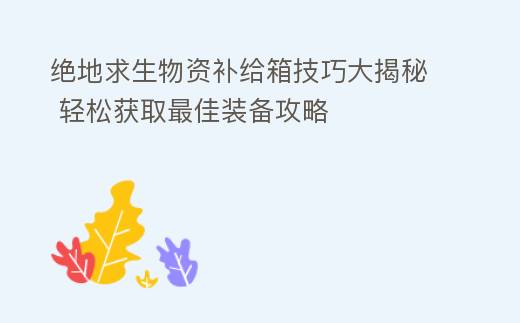 在《绝地求生》中,掌握物资补给箱的技巧对于玩家的生存至关重要。通过合理规划航线、掌握降落技巧、快速搜索补给箱、合理分配物资、学会利用环境以及保持警惕,玩家可以在游戏中更好地应对各种挑战。