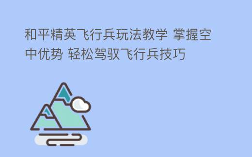 和平精英飞行兵玩法教学 掌握空中优势 轻松驾驭飞行兵技巧