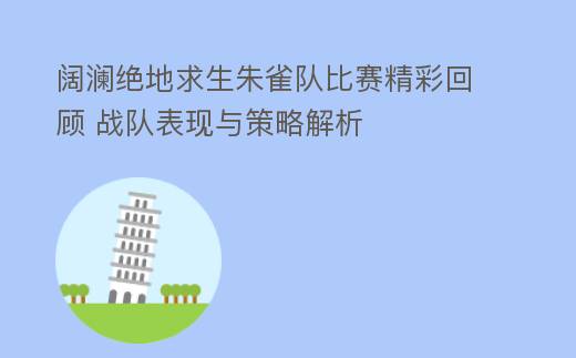 摘要:前言:在电子竞技的世界里,每一场赛事都充满了激情与挑战。阔澜绝地求生朱雀队比赛作为一场备受瞩目的竞技盛宴,吸引了无数玩家的目光。在这场紧张刺激的对决中,朱雀队将如何发挥团队协作的优势,在绝地求生的大战中脱颖而出?本文将带您深入了解这场赛事的精彩瞬间。一、比赛背景与队伍介绍阔澜绝地求生朱雀队是一支实力强劲的电竞战队,成员们来自全国各地,拥有丰,阔澜绝地求生朱雀队比赛精彩回顾 战队表现与策略解析