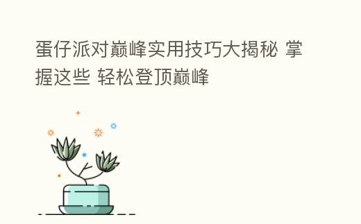 在《蛋仔派对》这款充满趣味与挑战的休闲竞技游戏中,想要在巅峰对决中脱颖而出,掌握一些实用技巧是必不可少的。本文将为你揭秘《蛋仔派对》巅峰实用技巧,助你轻松登顶,畅游派对!