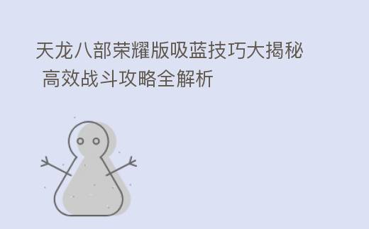 前言:在《天龙八部荣耀版》这款游戏中,吸蓝技巧是提升战斗力的关键。掌握正确的吸蓝方法,可以让你的角色在战斗中更加游刃有余,轻松击败敌人。本文将为你详细介绍天龙八部荣耀版吸蓝技巧,助你成为战场上的霸主!
