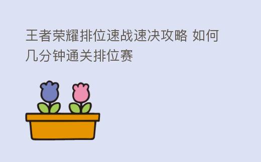 王者荣耀排位速战速决攻略 如何几分钟通关排位赛