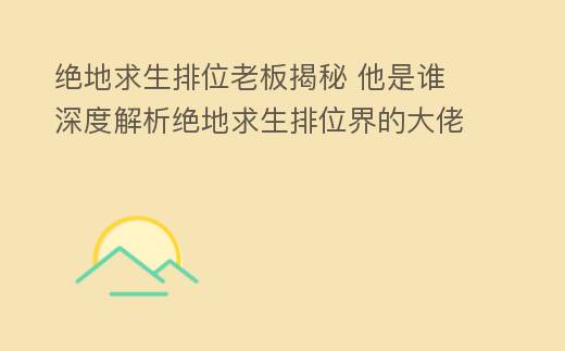《绝地求生》排位老板是谁?这个问题没有固定的答案,但我们可以通过不断努力,提升自己的游戏水平,成为下一个排位老板。以下是关于“绝地求生排位老板是谁”的一些百度搜索相关词: