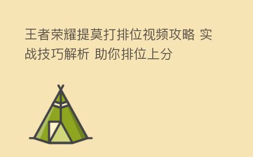 摘要:王者荣耀提莫打排位视频攻略:掌握技巧,轻松上分在王者荣耀这款MOBA游戏中,提莫以其独特的隐身能力和毒术而备受玩家喜爱。在排位赛中,如何运用提莫的优势,避开对手的针对,成为许多玩家关心的问题。本文将围绕提莫在排位赛中的打法、技巧以及应对策略,为大家带来一份详细的攻略,帮助你在游戏中轻松上分。一、提莫的定位与技能解析提莫在王者荣耀中定位为刺客型,王者荣耀提莫打排位视频攻略 实战技巧解析 助你排位上分