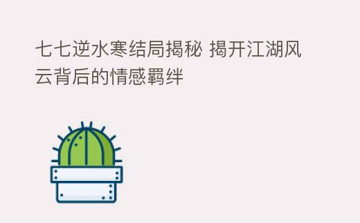 摘要:七七逆水寒结局:揭秘游戏中的情感纠葛与命运抉择在《逆水寒》这款深受玩家喜爱的武侠游戏中,七七这个角色以其特殊的魅力和复杂的情感纠葛,成为了许多玩家关注的焦点。七七逆水寒结局究竟该该怎么办办?她将该该怎么办办面对自己的命运?本文将带您深入解析七七逆水寒结局,揭开这段武侠传奇的神秘面纱。一、七七逆水寒结局情感纠葛在游戏中,七七与男主角叶开之间的情感纠葛是玩家们津津乐道的话题。叶开对七,七七逆水寒结局揭秘 揭开江湖风云背后的情感羁绊