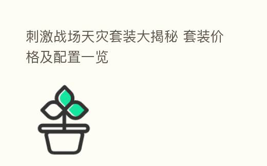 摘要:文章标题:刺激战场天灾套装:揭秘游戏中的神秘力量前言:在《刺激战场》这款热门的射击游戏中,天灾套装无疑是一道亮丽的风景线。它不仅拥有特殊的造型和属性,还能为玩家带来意想不到的惊喜。本文将带你深入了解天灾套装的奥秘,让你在游戏中轻松驾驭这股神秘力量。一、天灾套装的起源与特点天灾套装是《刺激战场》中的一款特殊装备,起源于游戏中的天然灾害体系。这套装备以灾难为主题,包括服装,刺激战场天灾套装大揭秘 套装价格及配置一览