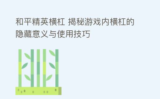 和平精英横杠 揭秘游戏内横杠的隐藏意义与使用技巧