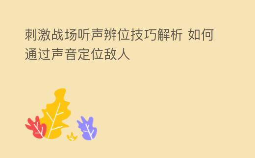 在《刺激战场》这款广受欢迎的射击游戏中,听声辨位是一项至关重要的技能。它不仅能够帮助玩家在战斗中迅速定位敌人,还能在关键时刻为玩家赢得生存的机会。听声辨位,顾名思义,就是通过听觉来判断敌人的位置。下面,我们将深入探讨这一技能的玩法和解决办法。