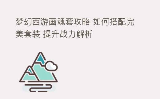 摘要:文章标题:梦幻西游画魂套:探寻梦幻全球的神秘力量前言:在《梦幻西游》这款经典游戏中,画魂套作为一款特殊的装备,承载着无数玩家的梦想与追求。它不仅代表着强大的战斗力,更象征着玩家在梦幻全球中的神秘力量。今天,就让我们一起揭开画魂套的神秘面纱,探寻其在游戏中的特殊魅力。一、画魂套的起源与特点画魂套,顾名思义,是一种具有神秘力量的,梦幻西游画魂套攻略 如何搭配完美套装 提升战力解析